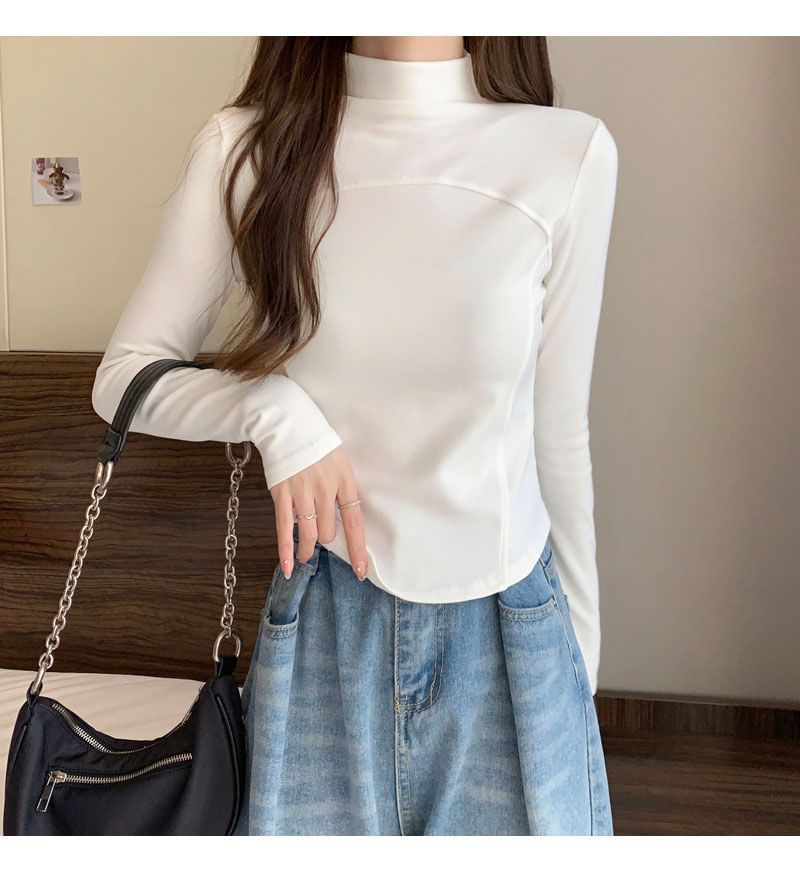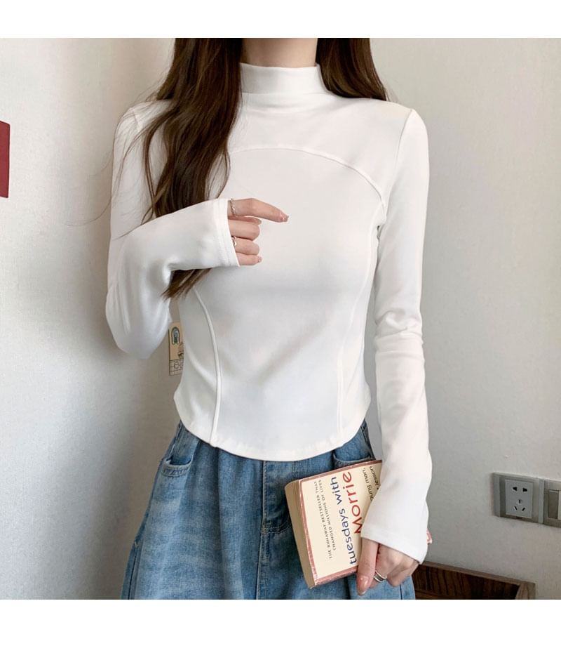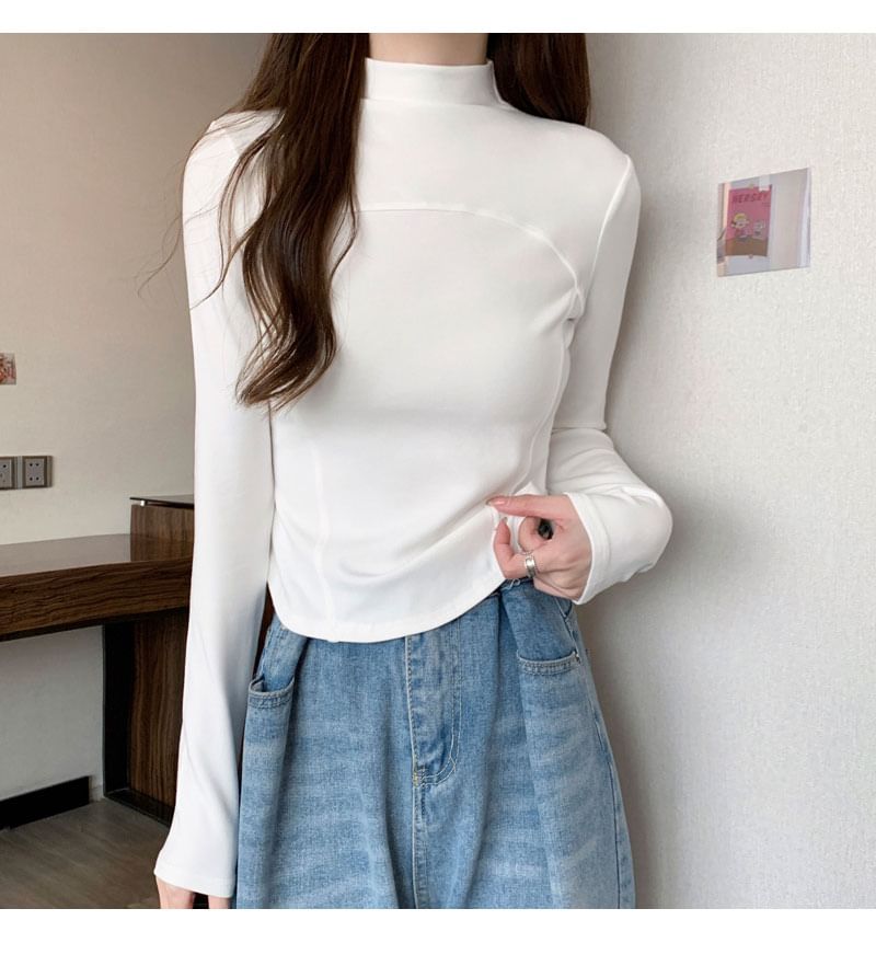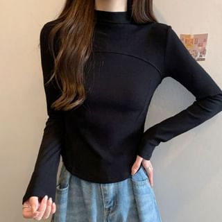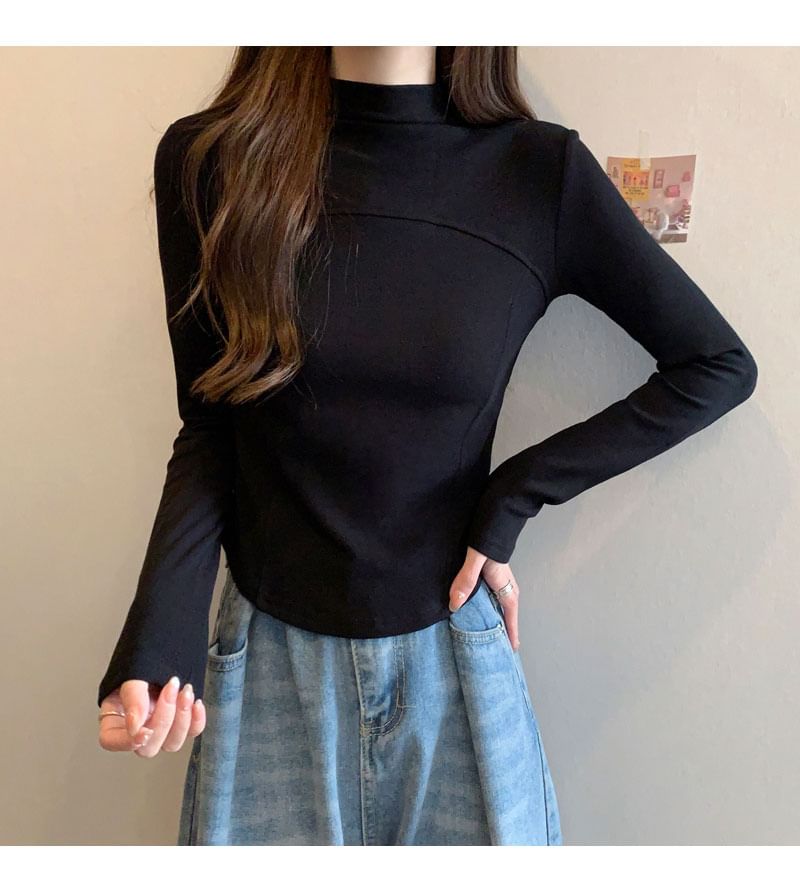 Long-Sleeve Mock Neck Plain Top