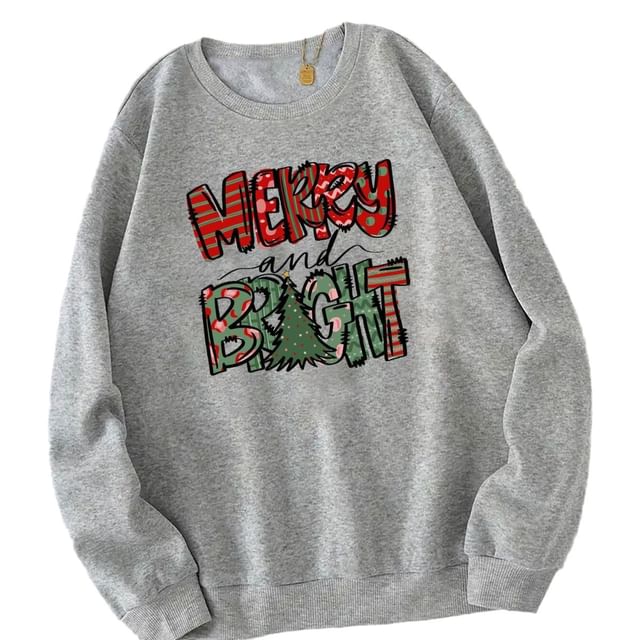 Long-Sleeve Round Neck Christmas Tree Print Pullover