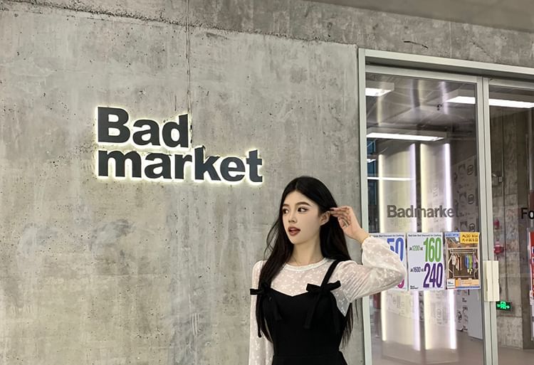 Long Sleeve Round Neck Lace Panel Patchwork Midi A-Line Dress
