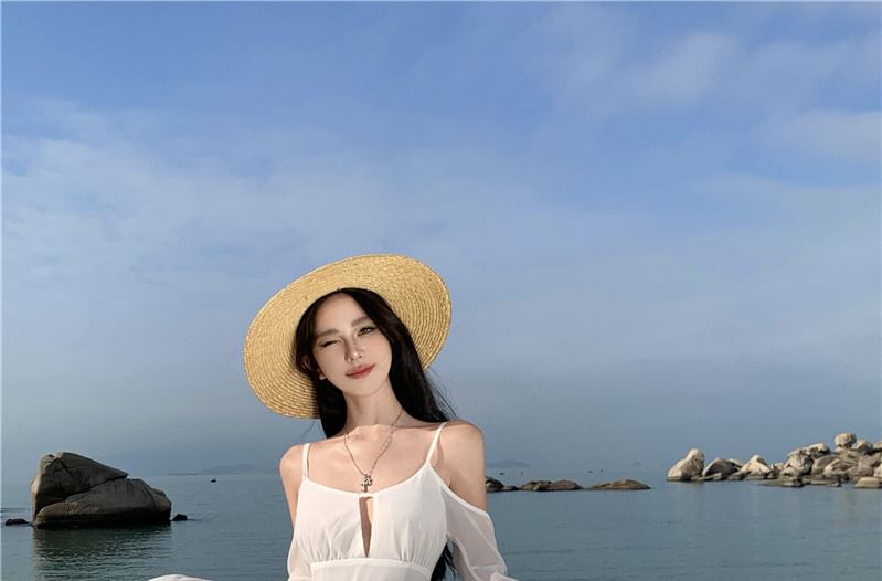 Long-Sleeve Scoop Neck Plain Maxi A-Line Dress
