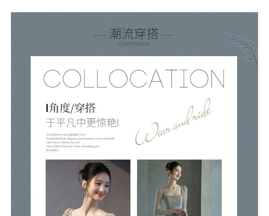 Long-Sleeve Square Neck Mesh A-Line Evening Gown