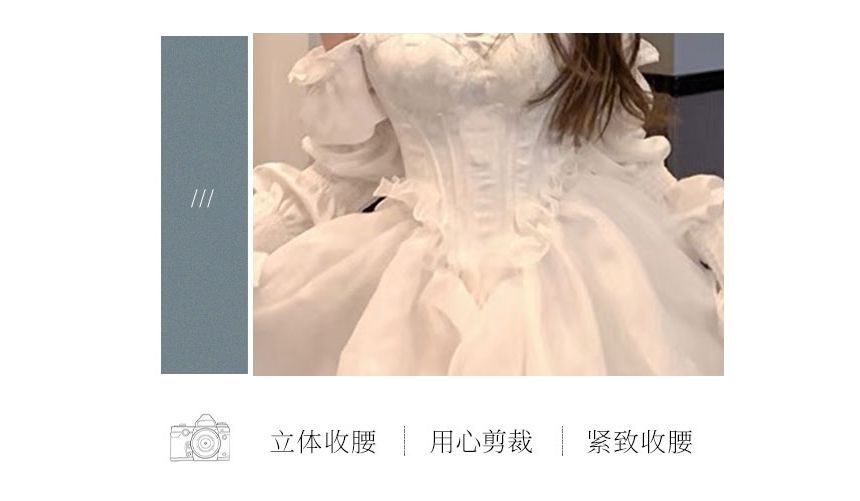 Long-Sleeve Sweetheart Neckline Mesh High Low Evening Gown