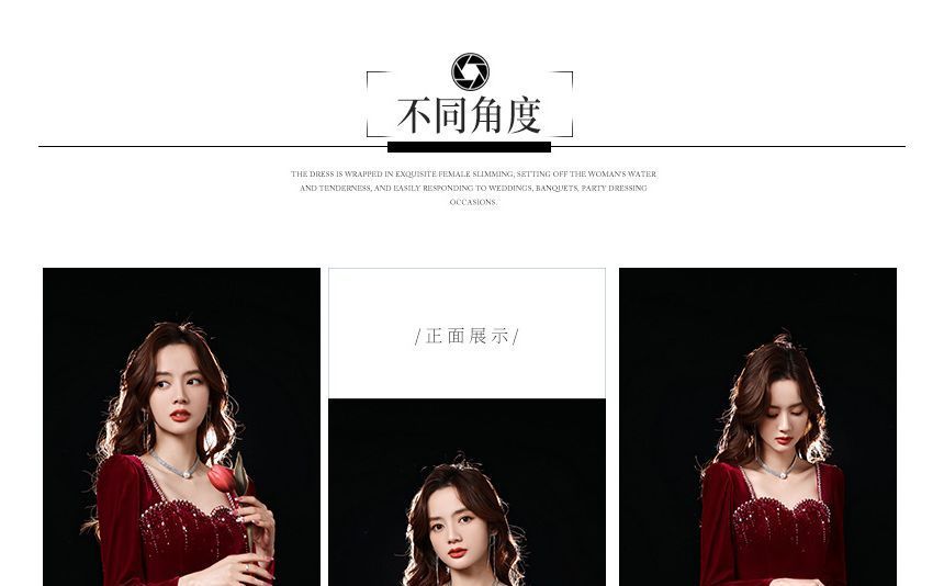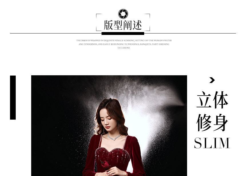 Long-Sleeve Sweetheart-Neckline Rhinestone A-Line Evening Gown