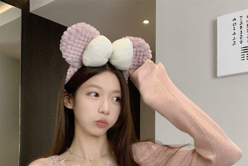 Long-Sleeve V-Neck Plain Lace Panel Button Accent Knit Top