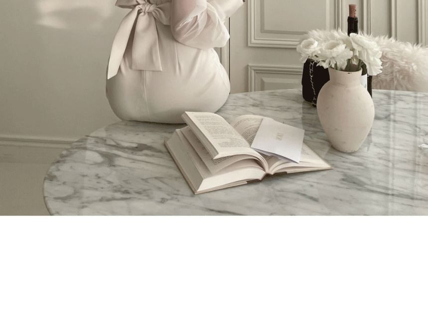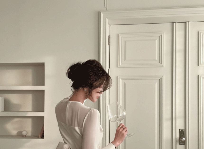 Long Sleeve V-Neck Plain Tie Back Button Panel Mesh Maxi Sheath Dress