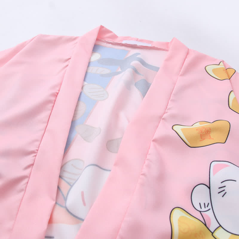 Lucky Cat Letter Print Cardigan Kimono Outerwear