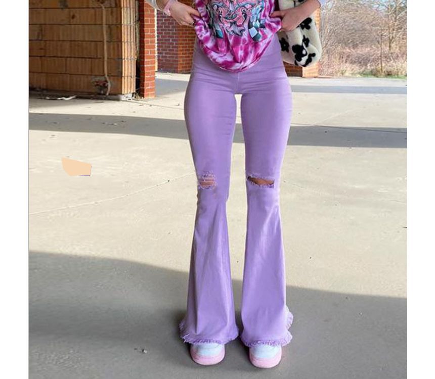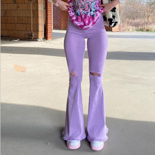 Mid Waist Slim-Fit Boot-Cut Ripped Jeans