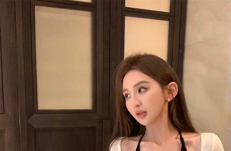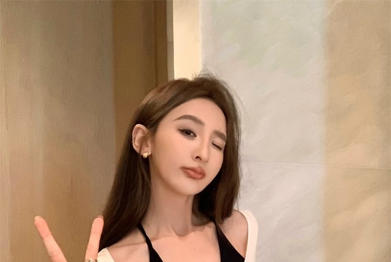 Mock Two-Piece Long-Sleeve Two Tone Crop Top