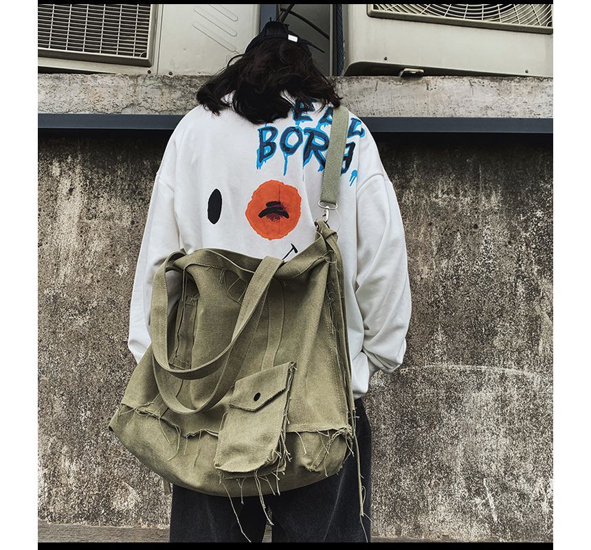 Multi-Pocket Frayed Crossbody Bag