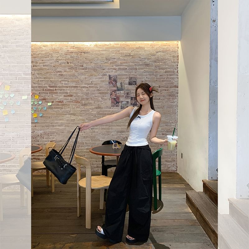 Neck Bow Fit Lace Panel Top Crew Tank Slim