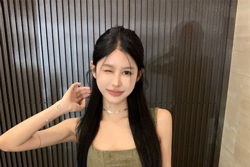 Scoop Neck Jacquard Asymmetrical Frayed Peplum Tank Top