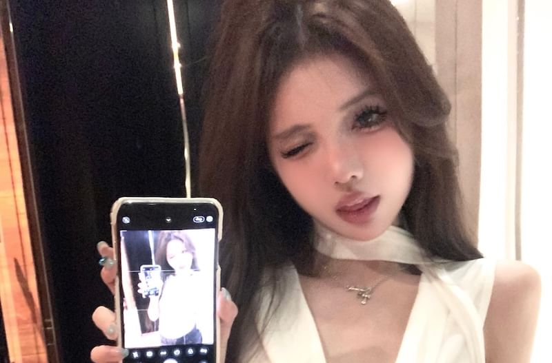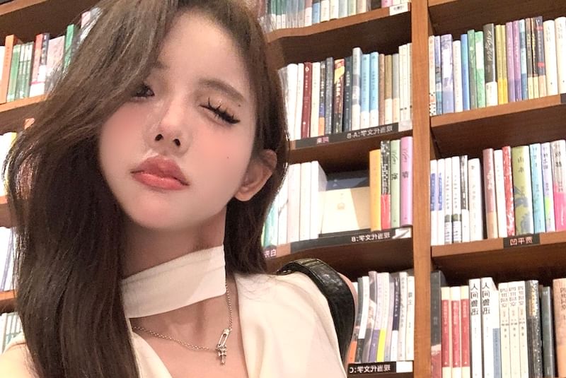 Neck Lettering Cowl Tank Crop Top Choker-Neck