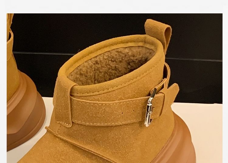 Buckled Fleece-Lined Platform Short Snow Boots