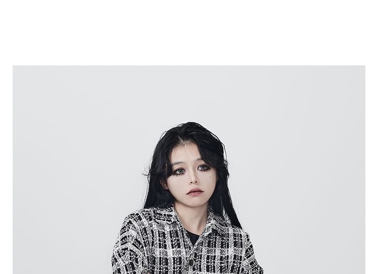 Collar Plaid Button Tweed Shacket