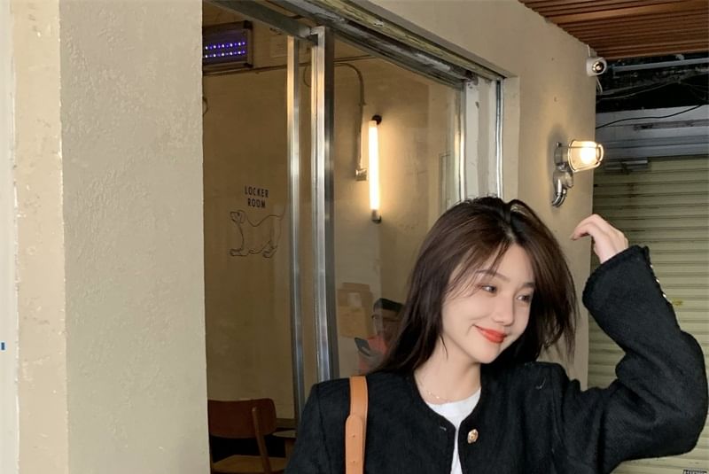 Crew-Neck Tweed Jacket