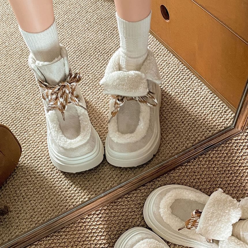 Fleece Panel Faux Suede Lace Up Short Snow Boots