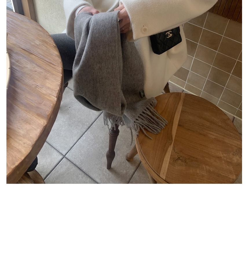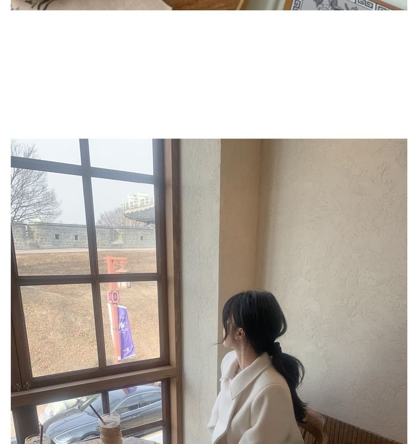 Lapel Collar Plain Double-Breasted Wool Coat