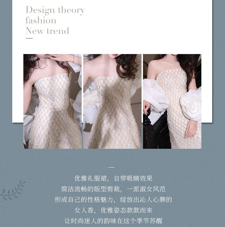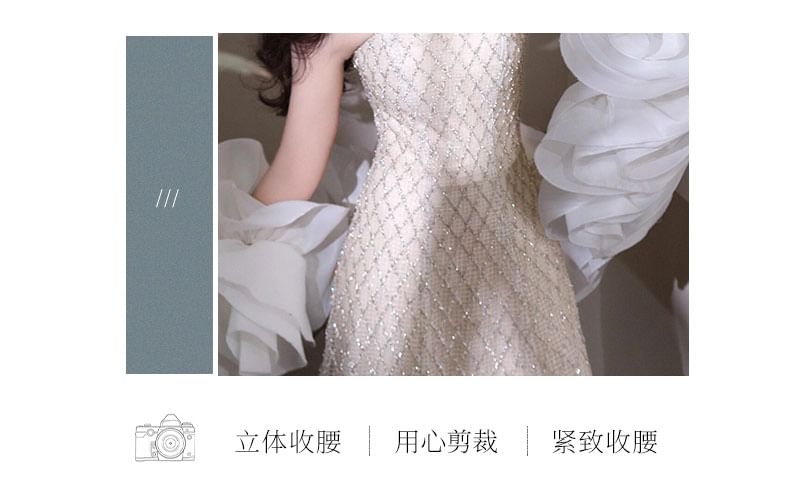 Off Shoulder Ruffle Sleeve Sequin A-Line Evening Gown