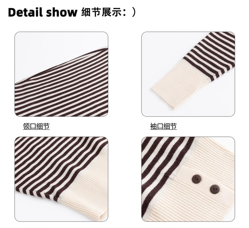 Off-Shoulder Striped Sweater / Mid Waist Plain Wide Leg Pants