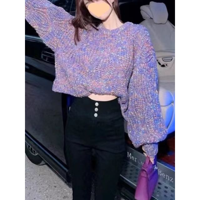 Oversized Bubble-Sleeve Crochet-Knit Sweater in 5 Colors