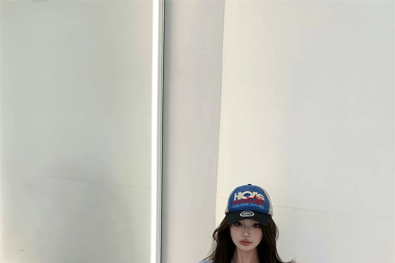 Panel Neck Mesh Crop Top Round Dotted Long-Sleeve