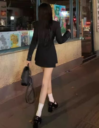 Peak Lapel Plain Double Breasted Blazer / High Rise Mini A-Line Skirt / Long Sleeve Collared Plain Shirt / Set