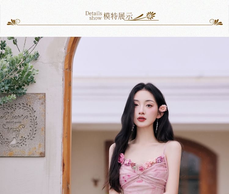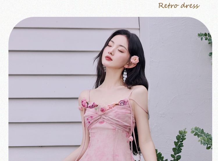 Plain Cardigan / Spaghetti Strap Floral Maxi A-Line Dress / Set