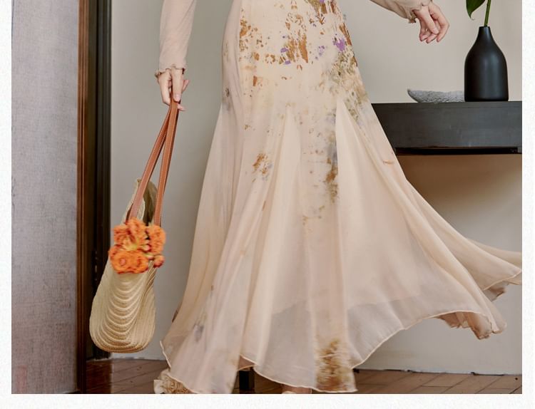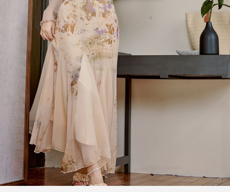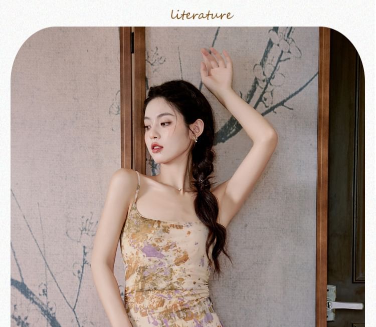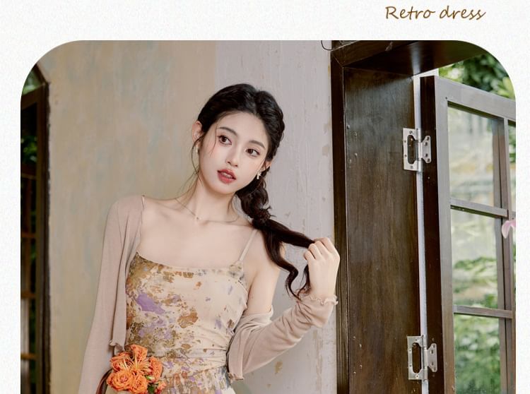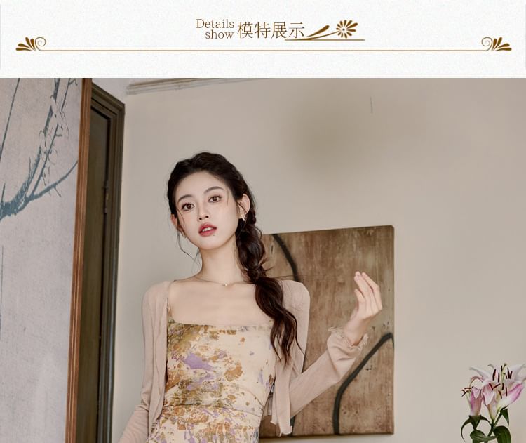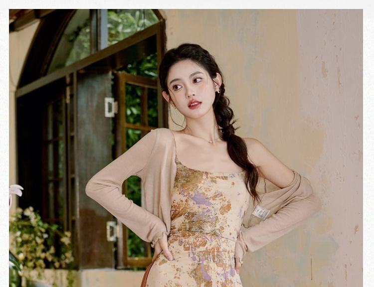 Plain Cardigan/ Spaghetti Strap Patterned Maxi Mermaid Dress / Set