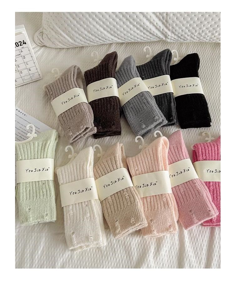 Plain Distressed Ribbed Socks Set