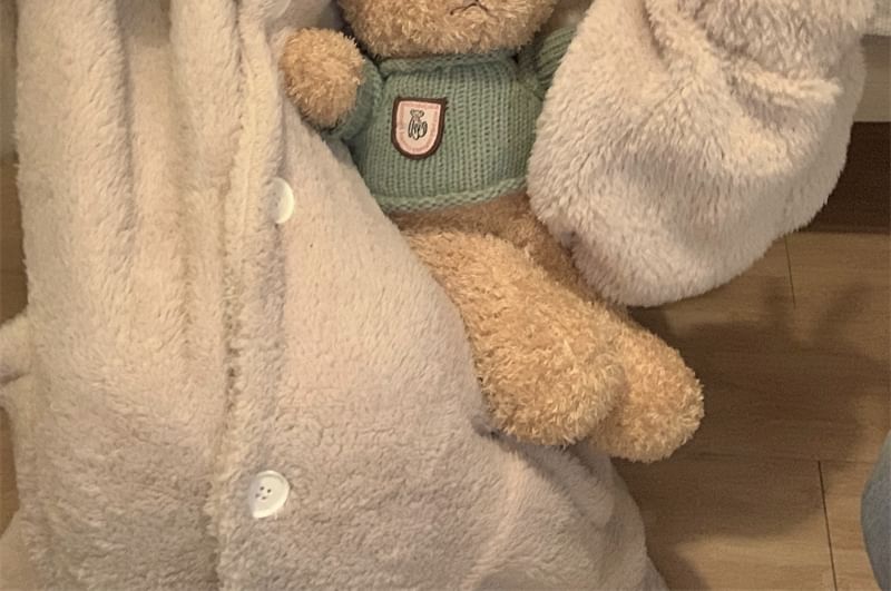 Plain Hood Fleece Button Robe