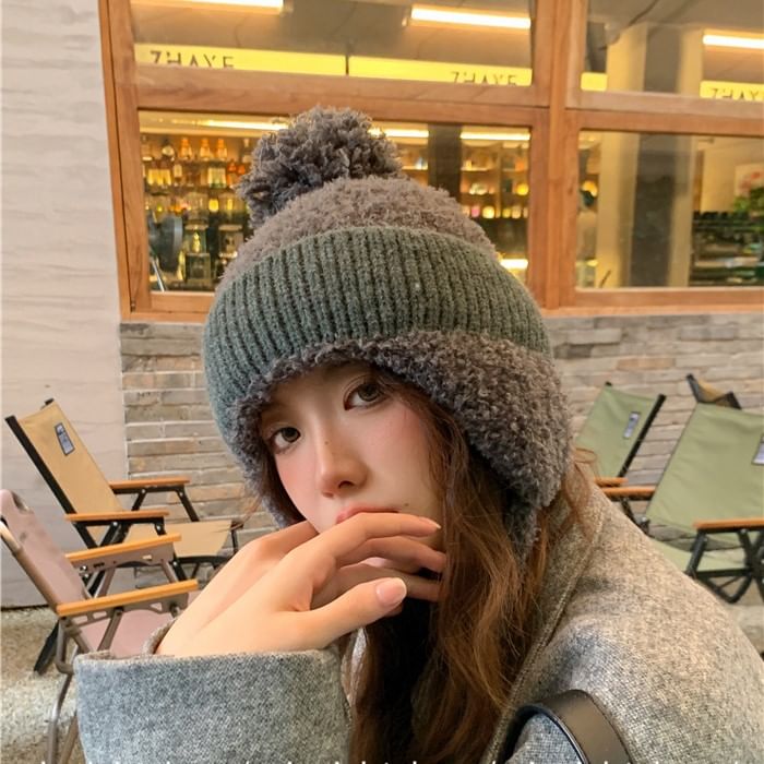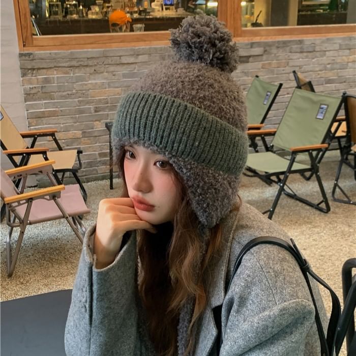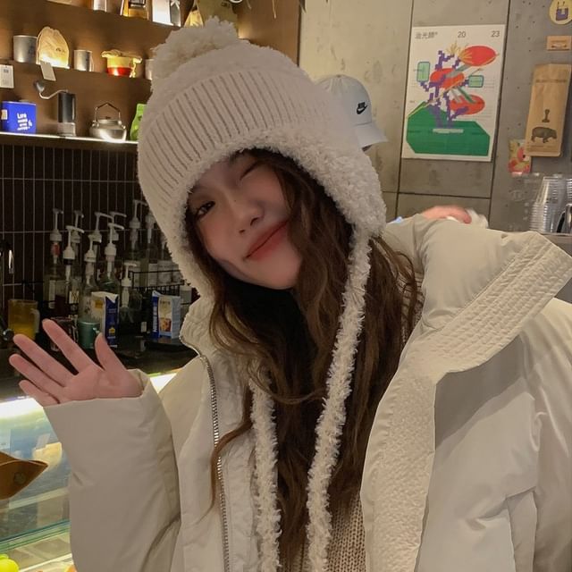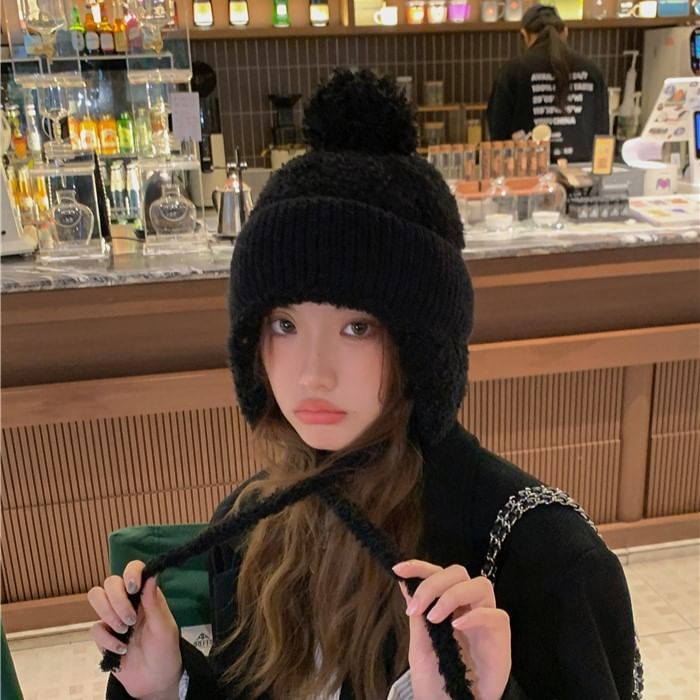 Plain Pom Pom Earflap Hat