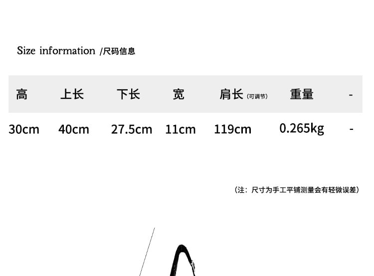 | Height | Upper Length | Bottom Length | Width | Strap Length |