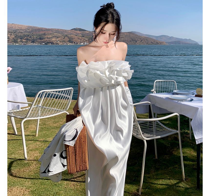 Plain Ruffle Satin Maxi Balloon Tube Dress