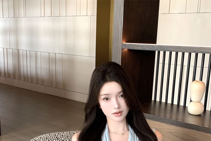 Tie-Neck Plain Tank Top