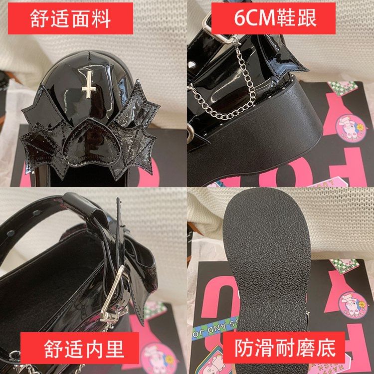 Platform Heart Bow Studded Ankle Strap Patent Leather Mary Jane Shoes