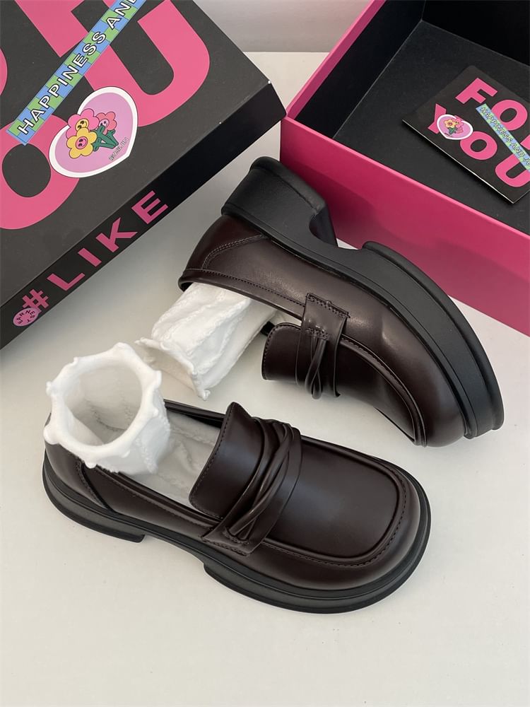 Platform Plain Faux Leather Loafers
