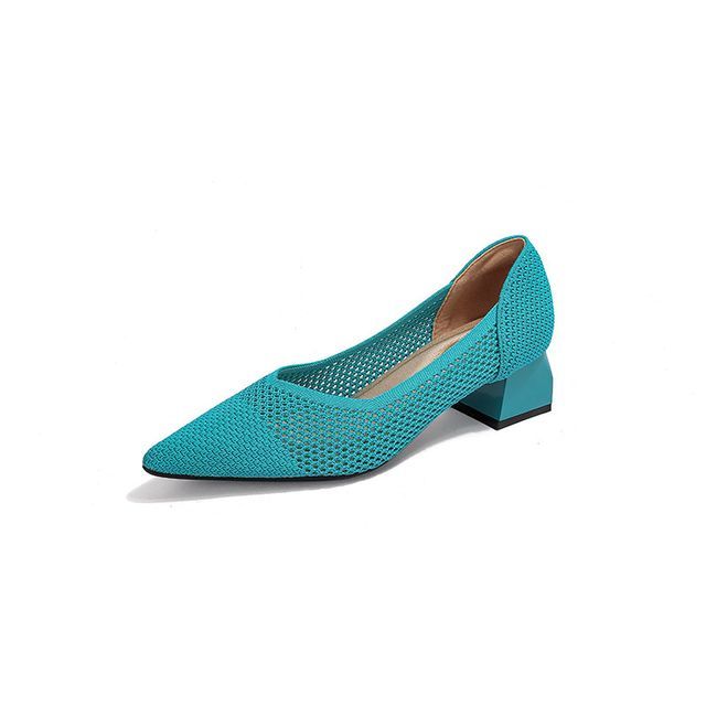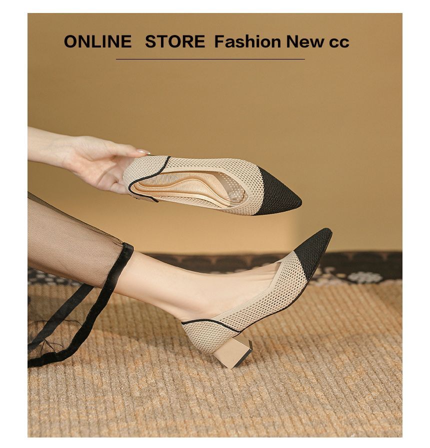 Pointed Cap Toe Chunky Heel Pumps