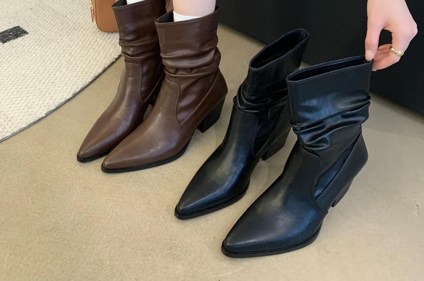 Pointy Chunky Heel Shirred Short Boots