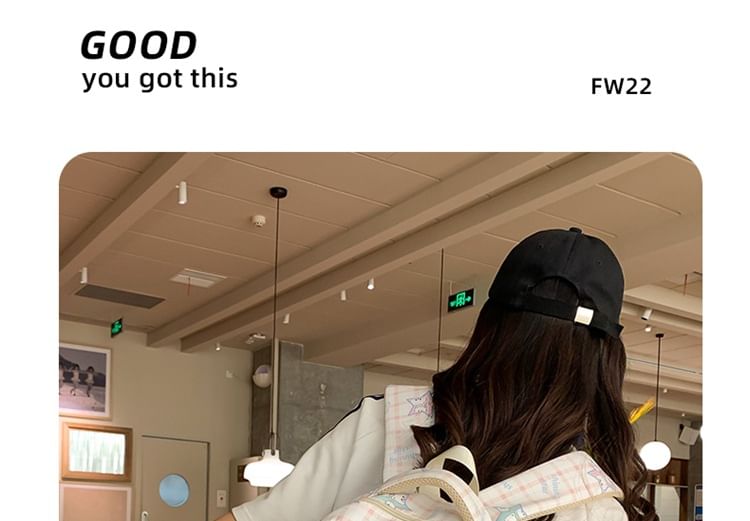 Cartoon Print Multi-Pocket Backpack / Bag Charm / Set