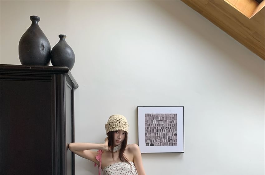 Print Tube Top Ruched Floral Ruffle Hem
