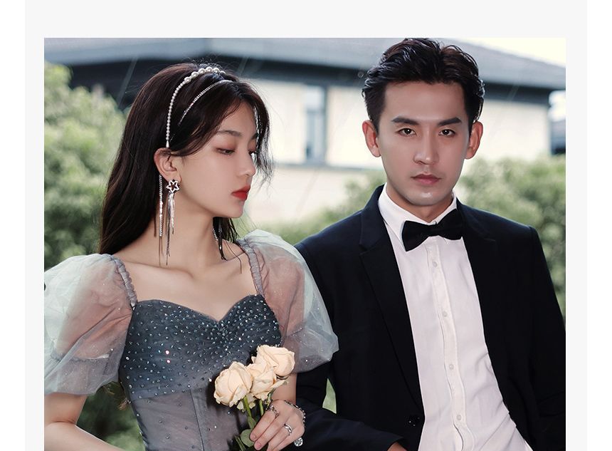 Puff-Sleeve Gradient Mesh A-Line Evening Gown / Midi Dress