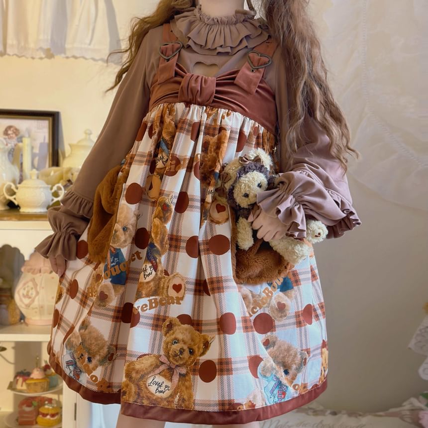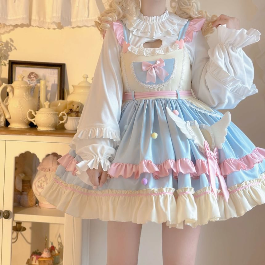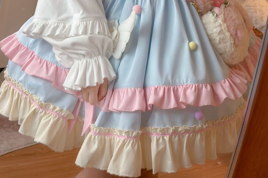 Puff-Sleeve High Neck Plain Ruffled Blouse