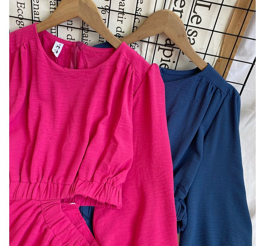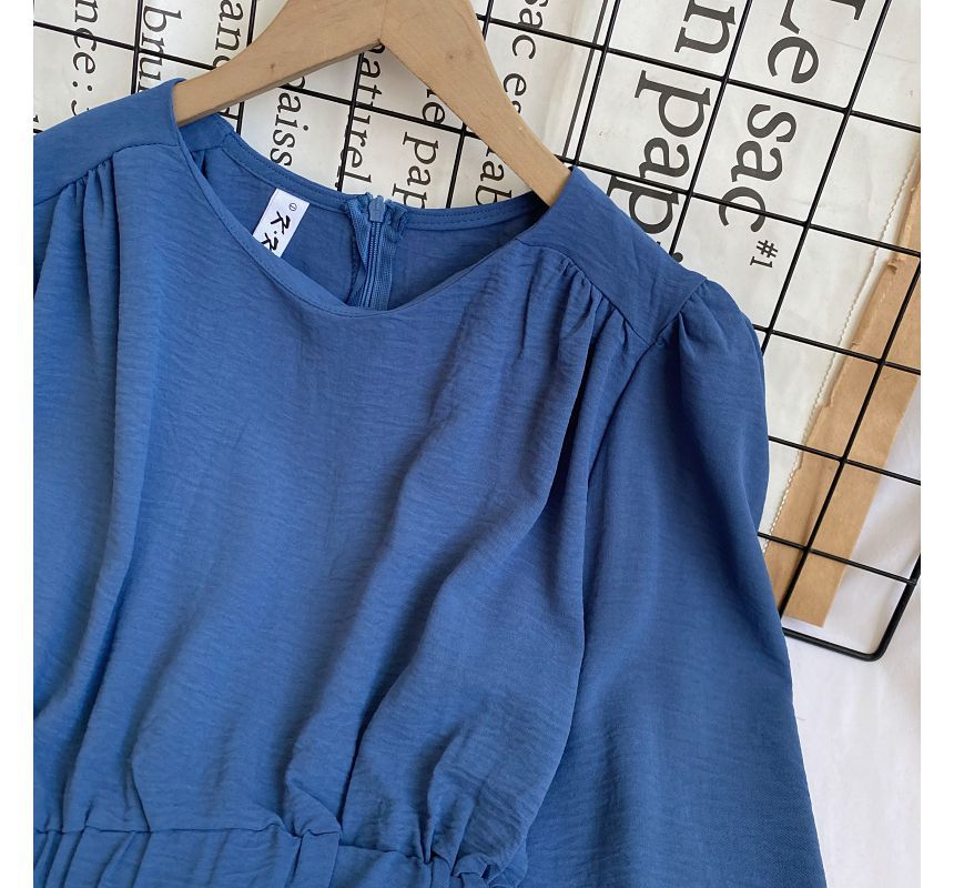 Puff-Sleeve Plain Cutout Midi A-Line Dress