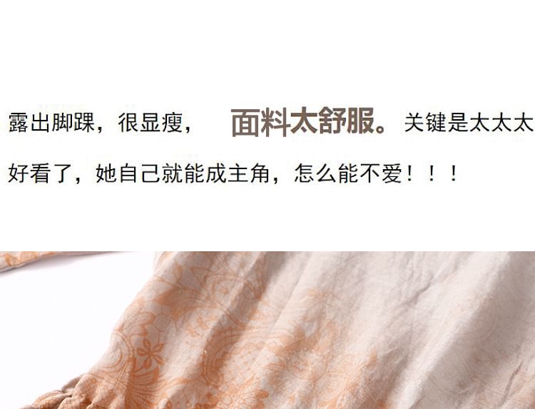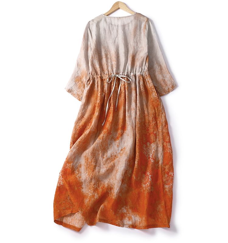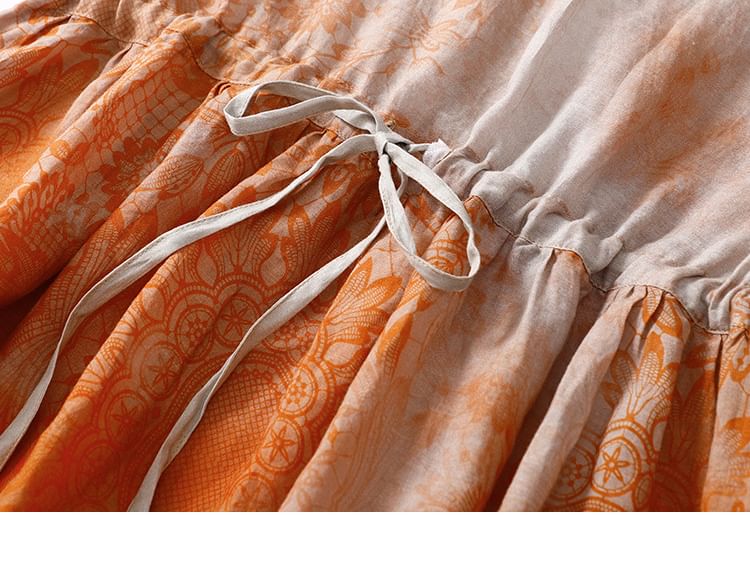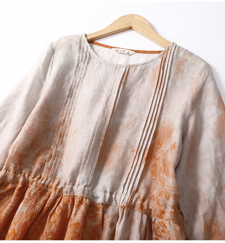 Puff-Sleeve Tie-Dyed Midi A-Line Dress