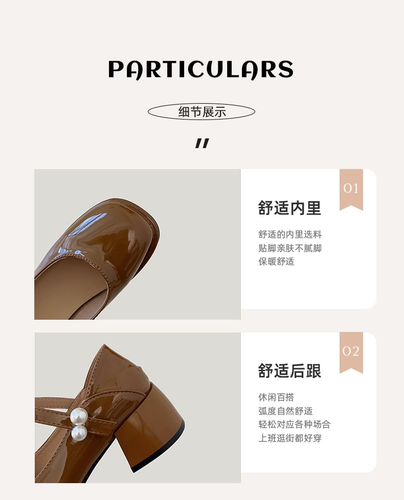 Pumps Pearl Mary Jane Block Heel Faux