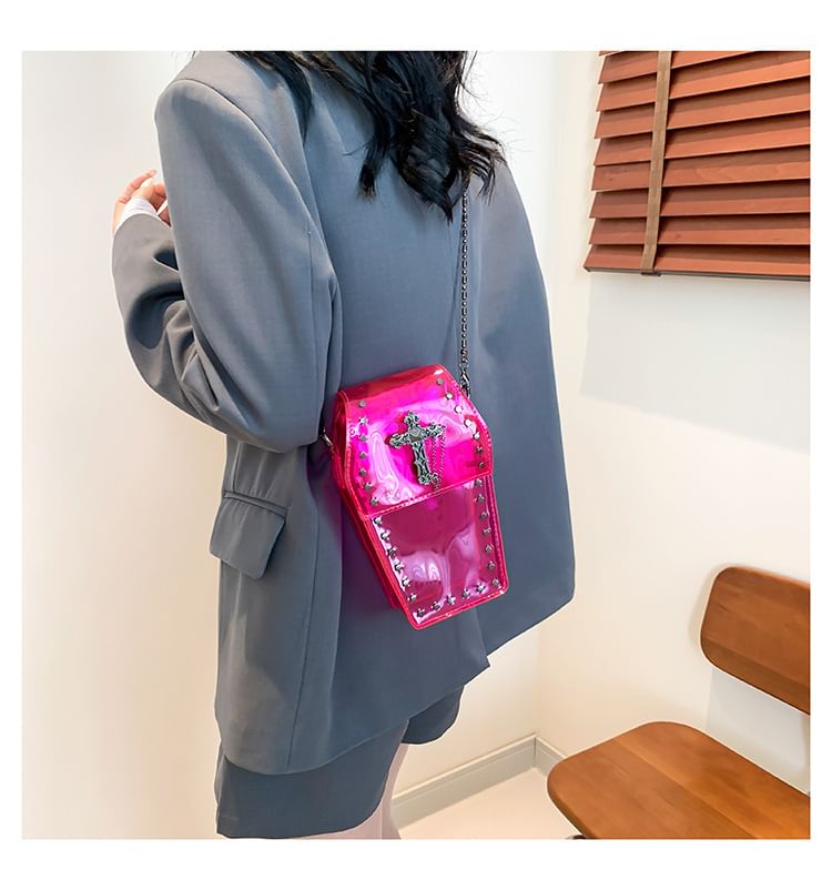 Crisscross Chained Studded PVC Crossbody Bag
