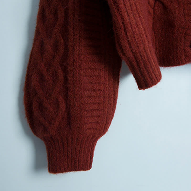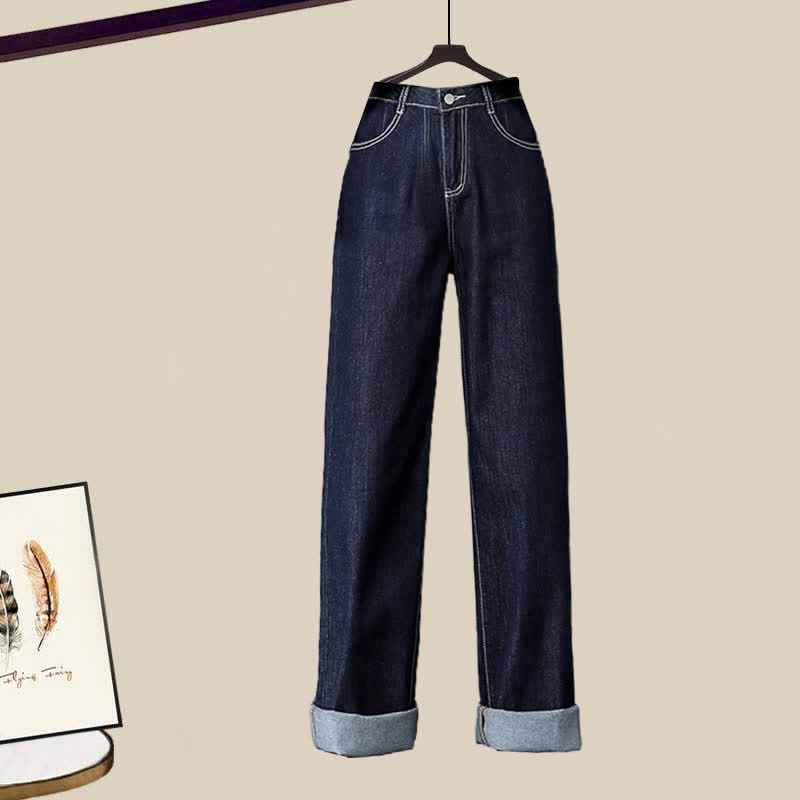 Red Cardigan Sweater Lapel Shirt Denim Pants Set