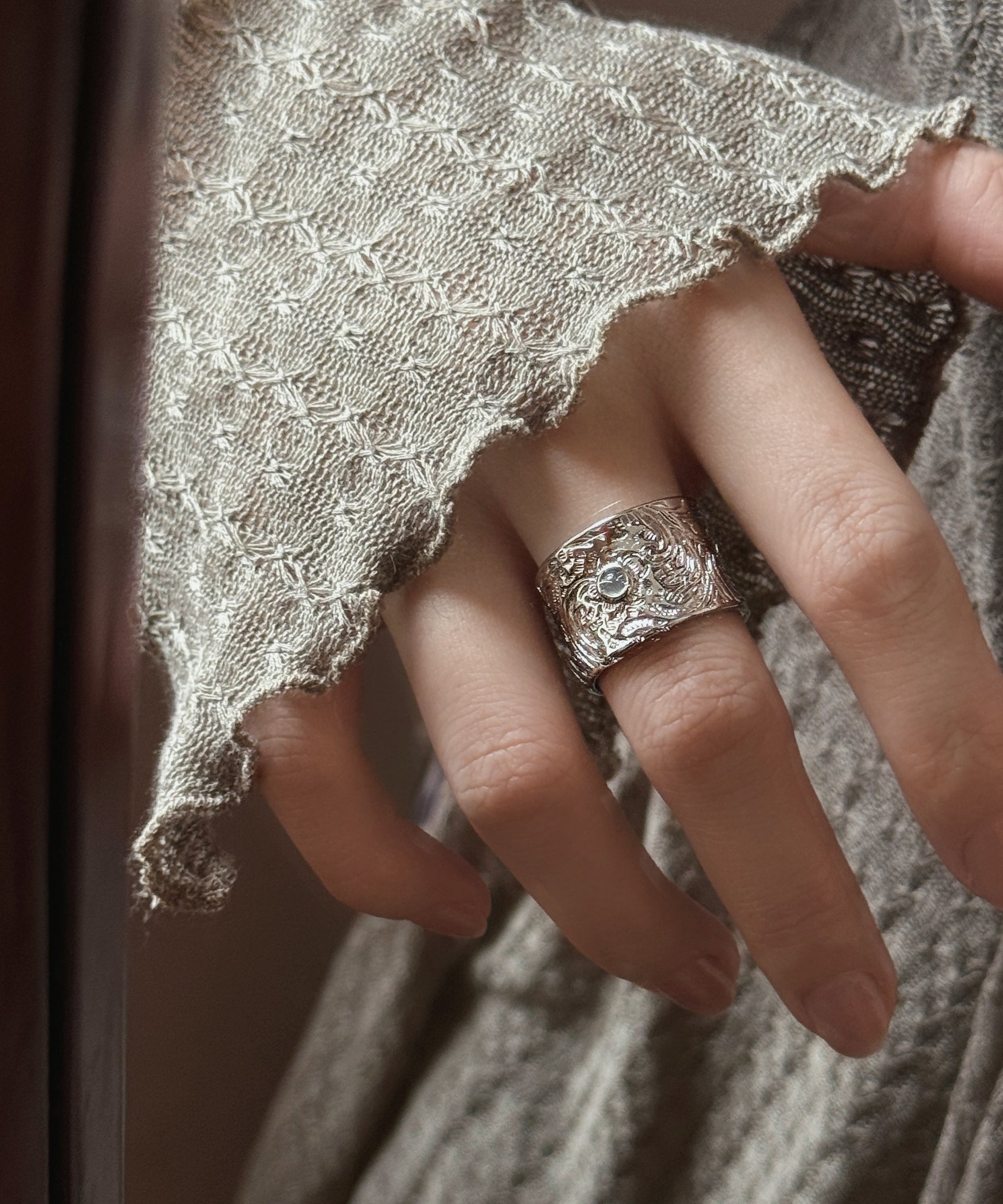 Retro Silk Sterling Silver Jade Open Rings