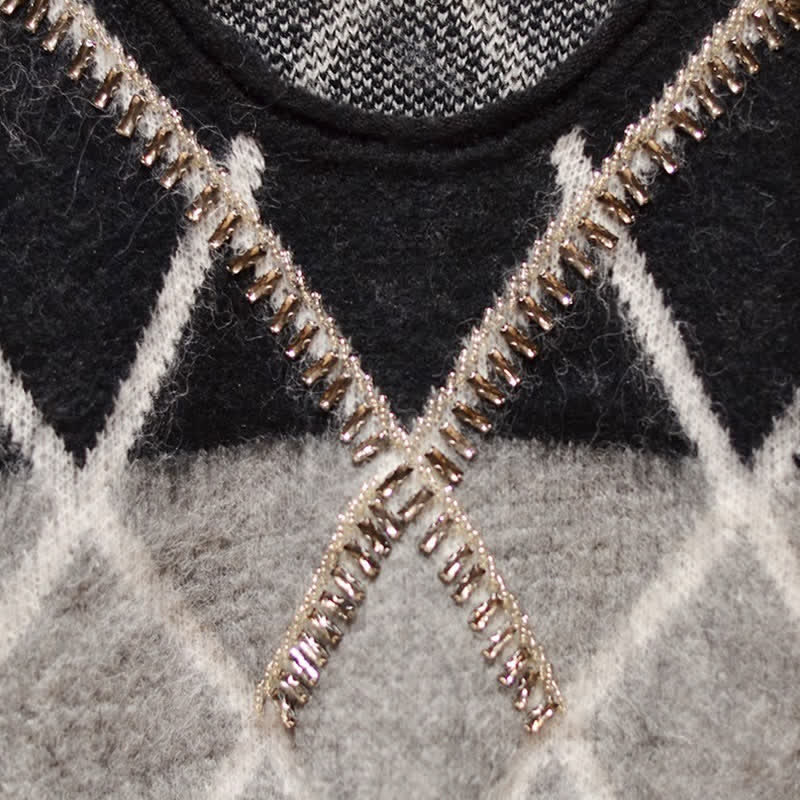 Rhombus Stripe Colorblock Sweater Long Skirt