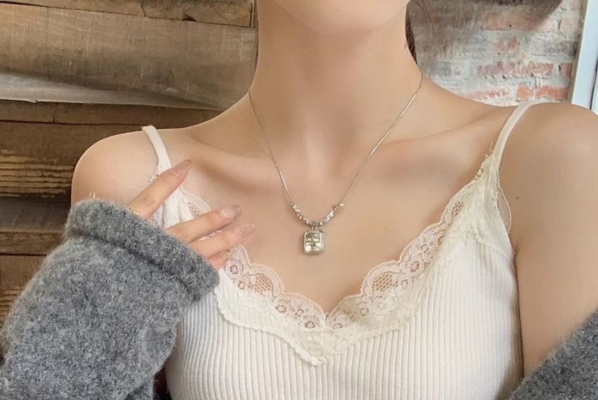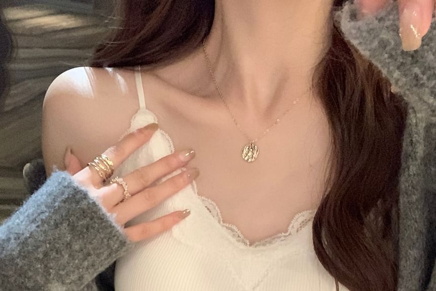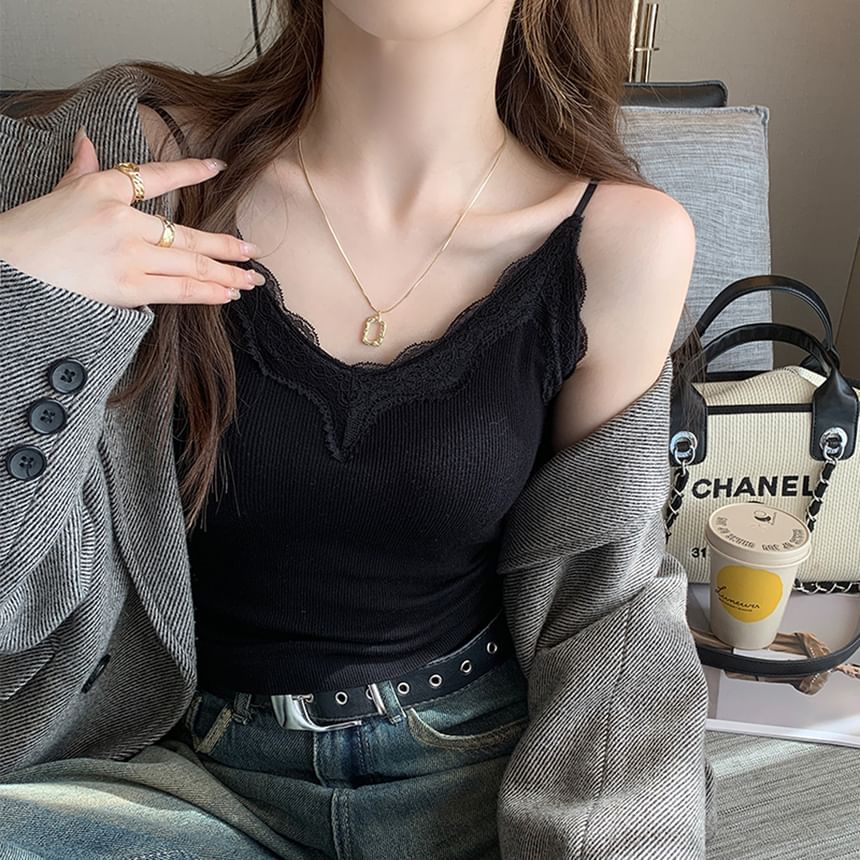 Plain Lace Trim Ribbed Padded Camisole Top